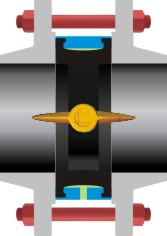 當(dāng)閥門運(yùn)動(dòng)到關(guān)閉位置時(shí),閥板只瞬間接觸閥座,從而減低摩擦、磨損和扭矩的需求。